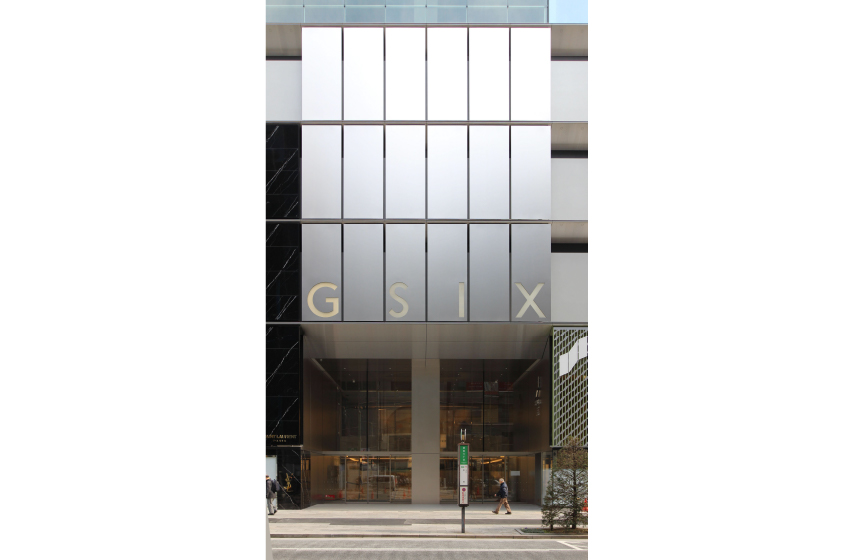 エントランス ウォールパネル・軒天・柱型・建具:ステンレス ショットブラスト仕上