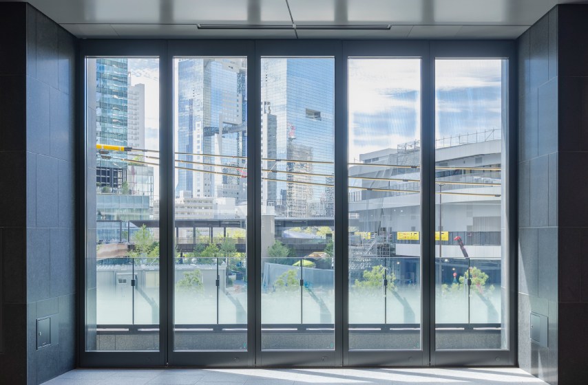 風除室 自動引分框扉:ステンレス STスーパーブラック バイブレーション仕上