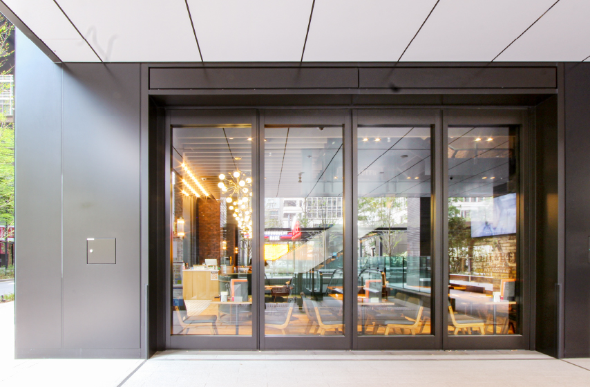 自動引分框扉・庇:ステンレス フッ素樹脂焼付塗装仕上