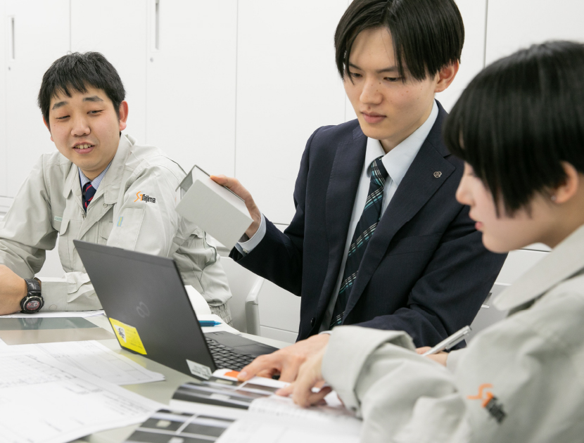 提案内容の検討にあたっては、デザイン課など他部署とも連携し、意匠性や技術面を踏まえた提案を行います。また、設計事務所にて弊社製品が採用された後は、施工会社を担当する営業部や設計部へ案件を引き継ぎます。